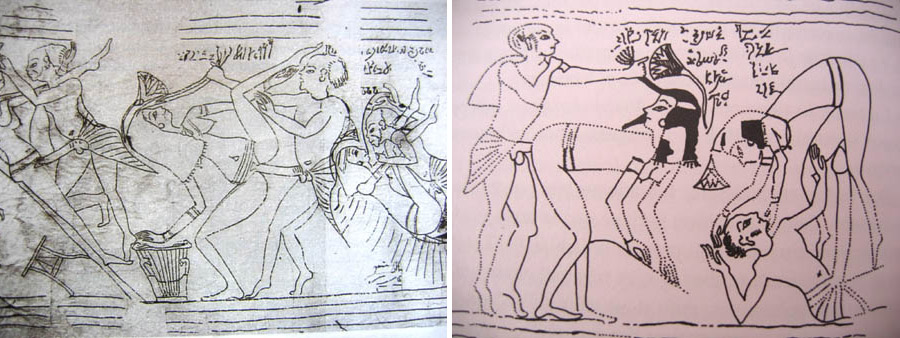 The Turin Papyrus was drawn around 1150 BCE and was hidden away because of its sexual content. It was thought to be drawn by one of the scribes for either his personal reasons or as the world's first "men's magazine".