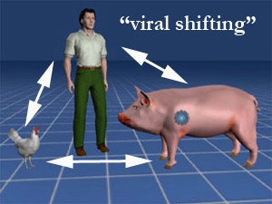 The result can be a new strain of the virus that can either be milder or possibly lethal. This is what appears to have happened with the H1N1 virus pandemic. Examination of the virus revealed genetic codes from birds, pigs and humans.