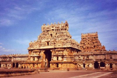 [Right: Zikharis in Konkan.] The ancient Tamils were international traders and colonizers. Wherever they went in the world, they left an unmistakable imprint of their presence, such as place names, foods, games, and temple buildings. Their temple buildings were usually zikharis (tiered or pyramidical temple platforms). Often, small entrances or temples were located on each tier, but not always. On the top tier, there was always a temple. On top if it often stood an ornate rectangular steeple. However, circular domes or single spires often stood on top of the temple as well. Zikharis usually varied in appearance, according to the Dravidian or Tamil-derived cultures of the host nations. But one thing never changed: the unmistakable presence of Tamil influence.
