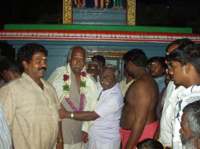 [Right: A group of Tamils honoring my friend T. L. Subash Chandra Bose at a religious meeting. He is the man in the background, wearing a garland of flowers.] Dr. Polyat Kaya, a Turkish professor of historical linguistics, wrote: ìPre-Iranian culture was Turanian culture and civilization before theAryans. Indus civilization was also a Turanian culture like the Sumerian culture was. Dravidian being related to these ancient cultures ties them all together and also to Turkish. They are all agglutinative languages although historians and linguists are conditioned not to mention the name Tur/Turk.î (Istanbul allingus@hotmail.com.)