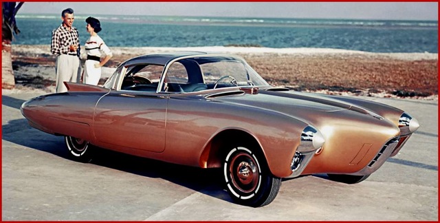 by Brian Packard 2014 A concept vehicle or show vehicle is a car made to showcase new styling and/or new technology. They are often shown at motor shows to gauge customer reaction to new and radical designs which may or may not be mass-produced. General Motors designer Harley Earl is generally credited with inventing the concept car, and did much to popularize it through its traveling Motorama shows of the 1950s. Before I tell you about Harley Earl, let me show you some of the concept or "prototype" cars he envisioned and influenced. Prototype Cars That Never Made It
