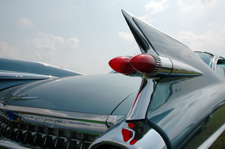 Harley Earl authorized the Frank Hershey design for the 1948 Cadillac, which incorporated the first automotive tailfin. Inspiration for the fins came from the Lockheed P-38 Lightning. But it extended beyond the war, during the age when space rockets captured the popular imagination (1950s and 1960s). The style caught on throughout Detroit and eventually led to competition between Harley Earl and Virgil Exner over the size and complexity of tailfins, culminating with those on the 1959 Cadillac models [above]. 57 Chevy: One Prototype That Made It!