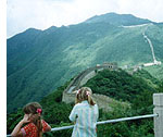 The ride in the tram was beautiful and a welcome rest. Lush green vegetation and endless mountain peaks stretched from horizon to horizon. As we looked out of the tram at the scenery, we could occasionally see a small mountain path leading up to one of these peaks, and sometimes even a donkey. We knew there were villages and people in there, hidden by the thick vegetation. But our thoughts were set on our destination, at the top of one of these mountain peaks where the Wall meets the sky. | ![]() | ![]()