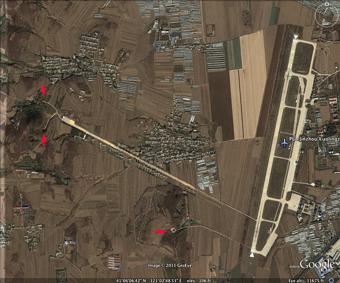 China's Air Force Goes Underground! Other than a direct hit from an asteroid, China's Air Force can withstand almost anything anyone can hurl at it. While America has been fighting expeditionary wars and consolidating its military bases, China has been forrowing its fleet of fighters and bombers in reinforced hangars, deep underground. Accessible to everyone, thanks to the amazing technology of Google-earth, images like the one below reveal the runway of this strategic air base, but nothing more. On closer examination, two paved taxiways lead to opposite sides of a mountain [red arrows] which houses the actual hangars and base command.