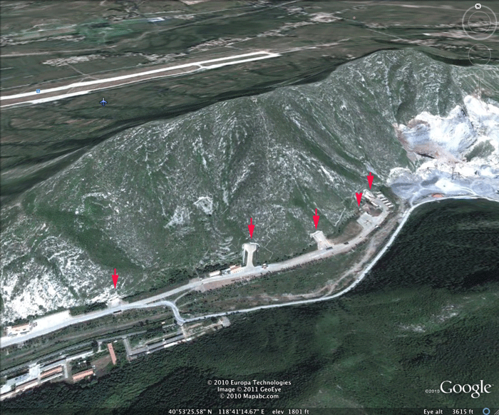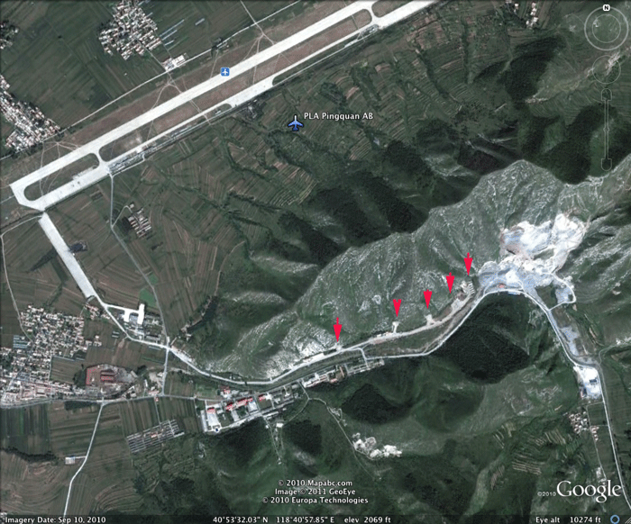 ![]() These images are of the underground base at Pingquan. The Google-earth images are very clear and impressive. I welcome anyone who can send pictures of US Air Force underground facilities. Again, the Chinese have over 40 of these bases now. What does it all mean? Many thanks to ausairpower.net and Google-earth for photos.