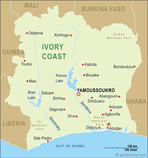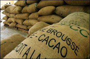 Cocoa makes up a third of the national income in the Ivory Coast. Their are about a million cocoa farms in the nation and these produce about half the world's supply of cocoa. Cash cropping for big foreign corporations has replaced the diverse and locally sustaining farming of the past. This means that the population is dependent on earning money from international markets to be able to buy food they used to grow themselves. This is the evil side of the "global market" that we seldom hear about.