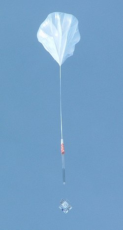 Right: The ATIC cosmic ray detector ascends to the stratosphere tethered to a high-altitude research balloon.