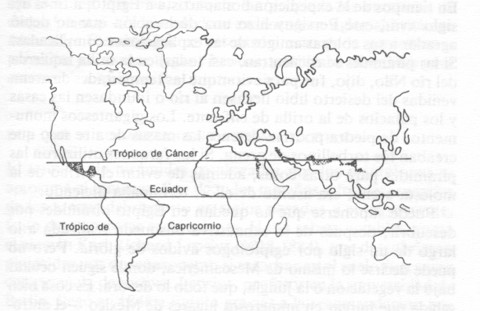The Great Flood scattered mankind in all directions, destroying all extant civilizations. No longer able to travel around the world from north to south, as they did in Eden, humans then had to follow the trade winds from east to west, between the Tropics of Cancer and Capricorn. Mankinds' post-flood civilizations developed between these tropics. See the following Illustration.