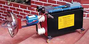 ![]() [above] Inside an industrial magnetron. Some smaller devices could easily be made by terrorists. In fact, a simple search of the internet yields plans and specifications for constructing small EMP devices from readily available components such as the megatrons from industrial microwave ovens, rated at 800 to 1200 watts, and several automotive batteries. These devices are said to be able, with the addition of a parabolic reflector, to disable the electronics of a modern car or truck within 200 meters.
