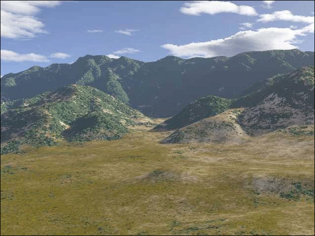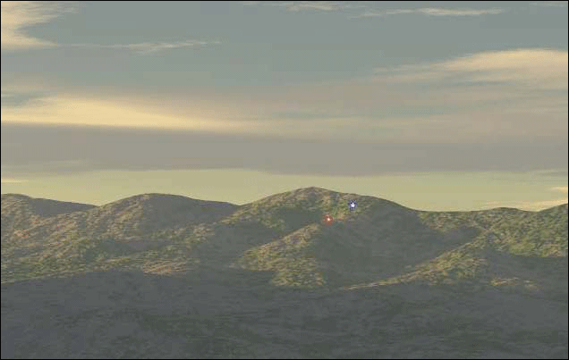 Ground-level (elevation 2 m) view from the theodolite position toward the