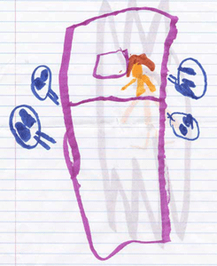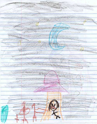 With the realization that innocent children are being abducted -- and having surgical procedures performed -- there has been an urgent need for some type of solution. [Right: drawing by abducted child, Ariel, age 5] While the government turns a blind eye to the whole alien phenomenon, some researchers have devised a solution that seems effective in preventing the alien's communication with the cerebral implants.