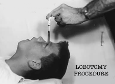 An instrument is carefully inserted along the side of the eyeball, punctures the cranium and deposits the implant in the brain tissue. There is no outward sign -- no obvious scarring or bleeding. Another method is to access the cranium through the nasal passages. This was the preferred site for frontal lobe lobotomies -- a common procedure in mental insitutions in the 50s -- in which an instrument that resembles and ice pick was inserted to do the dissection.