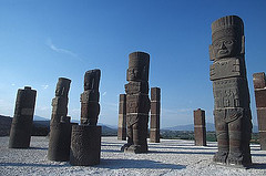 [Figure 11. The ruins of Tula or Tollan, in Tula, Hidalgo. The idols that once held up the temple ruins of Toltec temples are called "Atlantes." Atlantes were the Nahuatl equivalent of the Greek Atlas.]