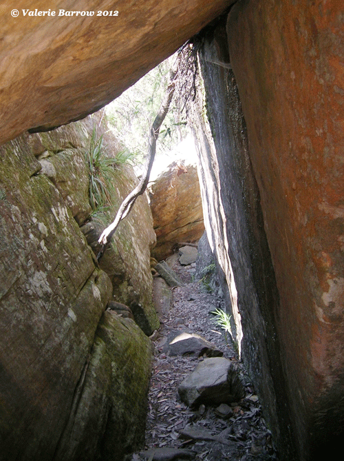 ![]() According to reliable sources, there was some construction on the site at Kariong in the 80s. A bulldozer was clearing wood and stones and is alleged to have driven over the top of the stony crevice where the hieroglyphs are located. It cracked several large and flat stones that were covering the crevice and acting as a roof. In fact, these stones can be still be seen today in photographs [above]. It's a stretch, but just maybe the crevice was once more like that "dry cave" we spoke about earlier. Maybe it did preserve the writing. Maybe we will never know the age of the hieroglyphs by just looking at them. So what's next? When did people first notice the Kariong Glyphs? People who lived near the site were surprised to learn that it contained anything. The rocky crevice was unremarkable prior to being cleared and before the roof was broken open. The first person to make note of the petroglyphs was Alan Dash, a government surveyor who was mapping the area in the early 1970s. He noticed a man emerging from the rocks and walking to the abandoned house on the site, once belonging to the Gilford family but then being host to transients. Dash acknowledges the cave like condition at the site by referring to the crevice as a "hole". He notes that, upon entering the hole, he saw hieroglyphic characters on the west wall but not on the east wall. Six month's later, Dash returned with a co-worker and noticed that the eastern wall was now covered with hieroglyphics. Then, a year after that, he brought a group of people to see the site and discovered a second group of hieroglyphs, outside and about 120 feet from the crevice. These hieroglyphs were smaller and more crudely drawn. [source]