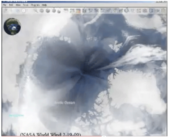 • Icebergs around the north pole are colored by red pollen of an unknown plant, as well as dust - a lot of it; including earth material on top of them