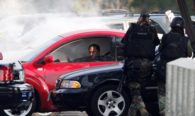 On August 14, 2009, several Los Angeles police cruisers and an unmarked armored vehicle pursued Joseph Moshe as he drove his red VW automobile [above] several miles through downtown Los Angeles before his car's engine was reportedly knocked out by an electromagnetic pulse. Moshe refused to exit his car when ordered several times by the police, and after the driver's window of his VW was smashed out by a robotic arm and several rounds of tear gas and pepper gas were fired into the vehicle, he still remained behind the wheel, refusing to move. At the time, police officers on the scene were stunned that Moshe was able to withstand three tear gas shells and hosing with pepper spray without moving. Later that day, a Los Angeles law enforcement official said: "I can't explain that; there's no way to explain that."