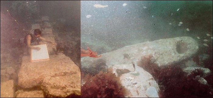 Fig 6: The underwater ruins of the fabled city of Dwarka [above], off the coast of western India, at a depth of 170 feet below the Arabian Sea. Source: The Lost City of Dvaraka - By S.R. Rao