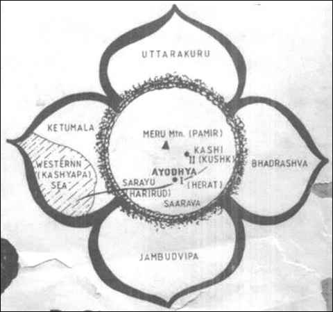 The legends and myths of the Meso-Americans support the Vedas in this respect. As I have previously stated, the image on the Mexican flag of an eagle with a snake in its beak commemorates the arrival of the Nagas in Meso-America. But yet, we are always somewhat skeptical of such myths. How can we convince ourselves? We can be totally confident that India and the Kurus or Turks discovered America if we'll quit thinking that Mt. Meru is a "mystical mountain" but just mankind's first world map.