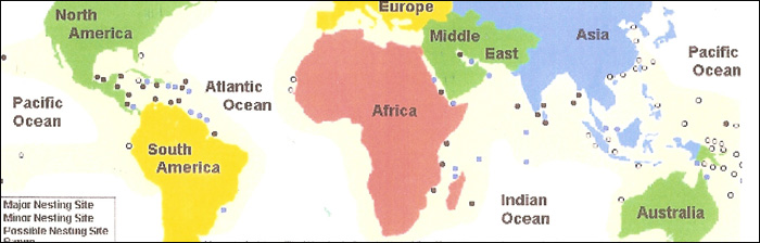 Colored map showing turtle distribution.