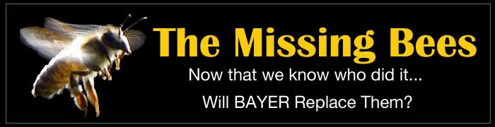 But it now appears that a much more basic culprit has killed the bees -- Bayer Corporation. Colony Collapse Disorder is poisoning with a known insect neurotoxin called Clothianidin, a pesticide manufactured by Bayer, which has been clearly linked to massive bee die offs in Germany and France.