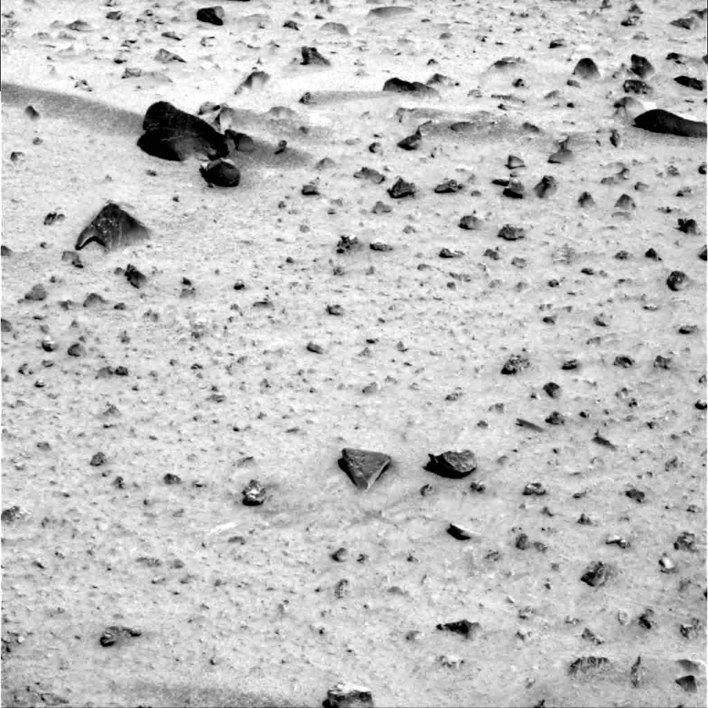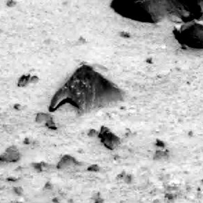 This scene was shot from the Mars Rover of some debris on the surface of Mars. Notice the unusual shaped artifact (enlarged below).