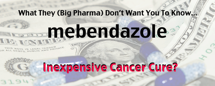 by Gary Vey Good News! Ordinarily, an article like this might not appeal to someone with a minimal interest in biology. But this article is about cancer. That's something that we will all experience, either personally or with someone close to us. I'm not going to bore you with statistics or preach about unhealthy lifestyles or genetics. The fact is that we all get cancer in our lifetime -- probably many times. Our bodies usually defend against the cancerous cells and they are destroyed before they can do any damage. Unfortunately, for some people, the battle isn't so easy and the outcome unclear. But wait... there is good news. It's a medicine that seems too good to be true, yet it is. And get this -- it costs just a couple of dollars and its in most every local pharmacy. It's anti-cancer success has been well documented in journals (which I will show you) -- even with cancers that are unresponsive to other chemotherapy. While it kills cancer cells it poses no harm to the normal cells and has little or no side effects. It's called mebendazole and "Big Pharma" hopes you will never hear about it. Mebendazole (MBZ)