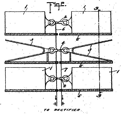wire 10. Thus the current is rectified and all positive impulses directed