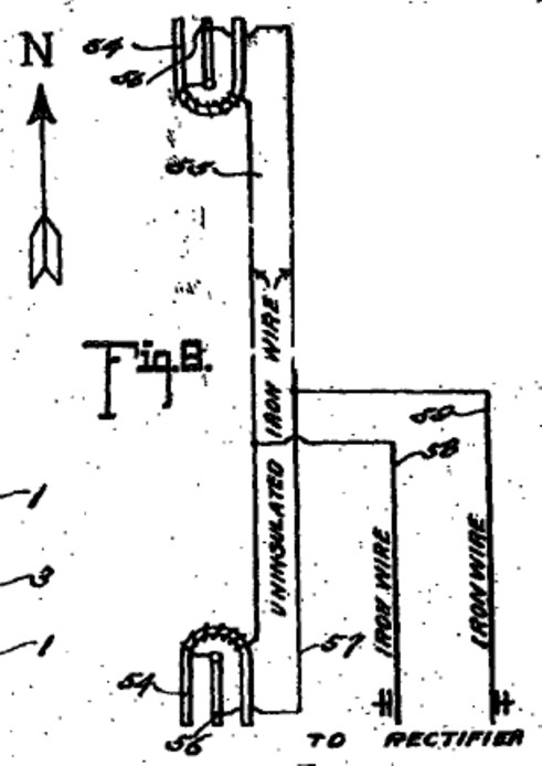 south. An iron wire 57 connects the plates 56, the ends of the wire being
