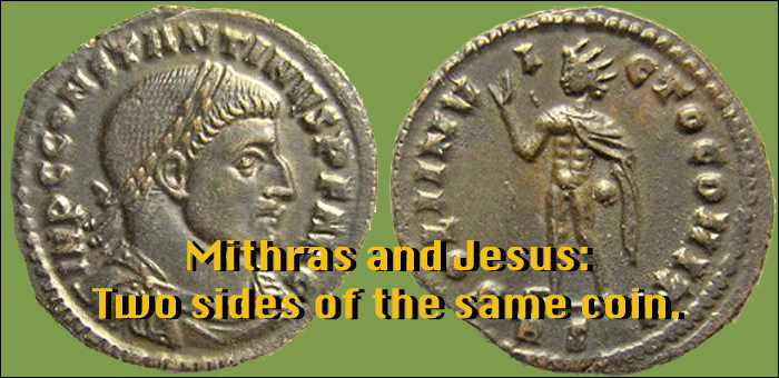 In the light of all of this, how should we consider the position of Mithraists towards Christianity? Competitors or cooperators? Friends or enemies? Perhaps the best indication is given by the coins minted by emperor Constantine until 320 a.D., with Christian symbols on one side, mithraic symbols on the other.