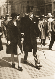 [Right:] Mrs. Taylor-Scott Hardin parades down New York's Fifth Avenue with her husband while smoking "torches of freedom,"a gesture of protest for absolute equality with men.