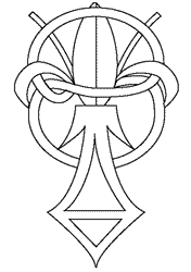 I have attached the "Official Device of the Order of Sion" for your inspection. I think you will note the similarities in the shapes, especially the two facing "v" shapes at the bottom and the "v" shape at the top. This is supposedly the "logo" or "family crest" of the "seed" of Jesus, who bore offspring through Mary of Magdala.