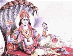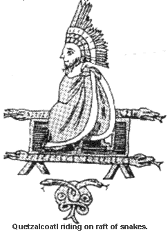 Quetzalcoatl's port of entry into Mexico. In Hindu mythology, Nahusha and God Vishnu are in close association. Vishnu is often pictured as floating on a raft of snakes [ left]. He also