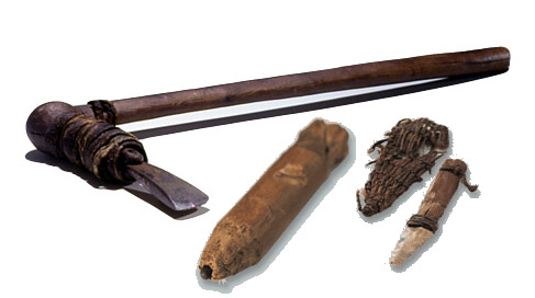 Blood and tissue on an arrowhead and axe were determined to be from several other individuals. There is also evidence that Oetzi was holding a knife when he emerged from the melting glacier. This suggests that he might have been attempting to escape just before he was fatally shot with an arrow at an altitude of 10,500 feet. His copper-headed axe and a quiver full of arrows were lying nearby.