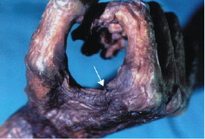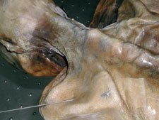 Recent advances in computerised tomography (CT), a sophisticated X-ray scan that allows multidimensional imaging, have given researchers an unprecedented view of Oetzi's internal anatomy. The pictures reveal a 13mm-long rip in Oetzi's left subclavian artery which lies just under the collar bone.