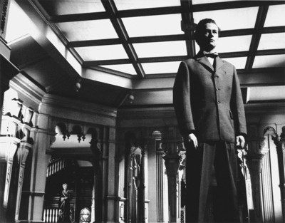 He indulged his young collaborator, plunging exuberantly into an artistic wonderland, accommodating his every desire and, in so doing, developing an entirely new cinematic dictionary from which motion pictures matured virtually over night. Floors were torn apart, and cameras inserted beneath set level, creating bizarre angles and mesmerizing imagery. Like Howard Hawks before him, Welles experimented with overlapping dialogue and exotic sound effects. Toland's crisp, brooding cinematography created a highly stylized, nearly documentary feel to the picture in which reality disturbingly dissolved into a haunting, netherworld of sullen images and bleak architectural insinuations, evoking a surreal canvas worthy of Gustav Doré.