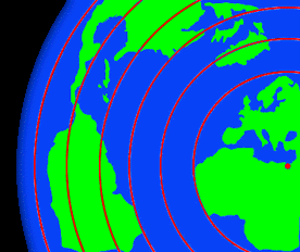 (See similar map on right, based on spherical projection and used for air flights originating in Cairo to determine distances and fuel consumption. This map was generated using sherical trigonometry - a science unknown to scholars until its discovery by the mathematician Hipparcus).
