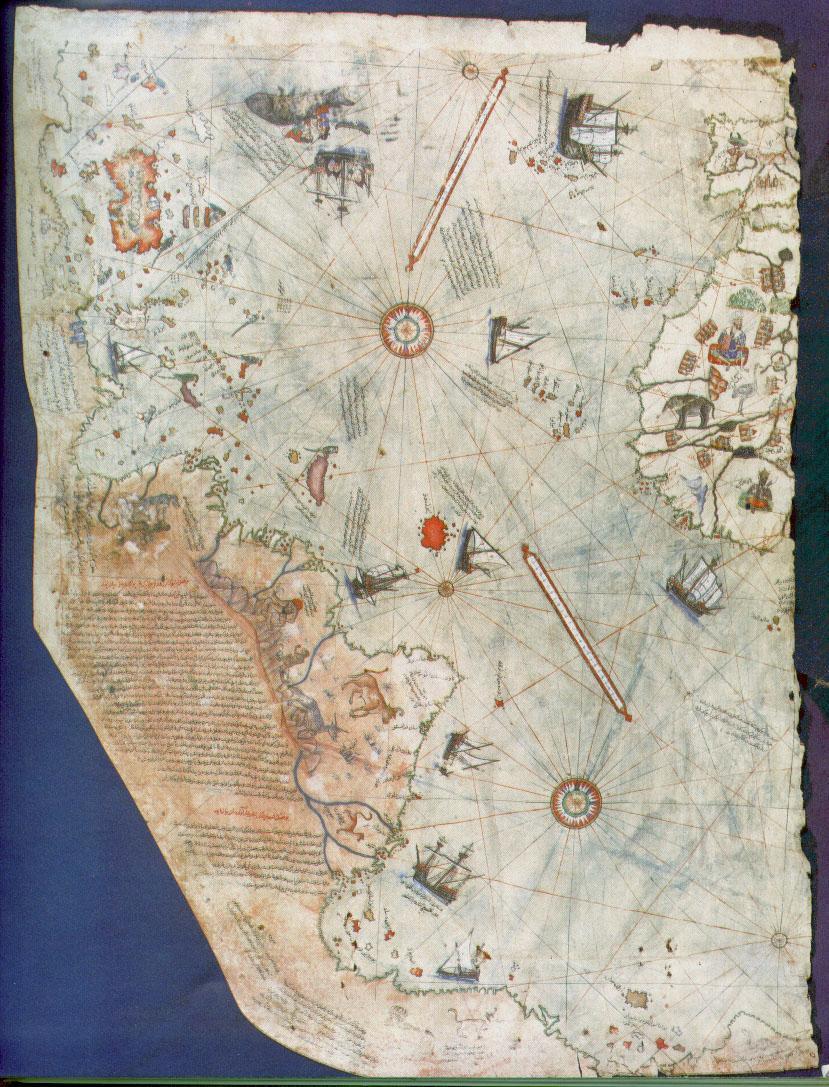 During renovations of the old Imperial Palace in what is now Istanbul (formerly Constantinople), a painted, parchment map was found, dated in the month of Muharrem, in the Moslem year 919 (A.D. 1513), and signed by an admiral of the Turkish navy, Piri Ibn Haji Memmed, known as Piri Re'is.