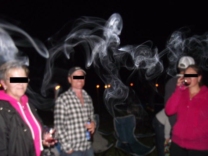 Hello.....these photos were taken with a digital canon slr camera with image stabilization. I had propped the cutout against the wall to take pics and there seemed to always be too much light over the left shoulder of the cutout ...it seemed hazy.....I zoomed in closer and took a shot of the head and doorframe and could see a definite haze over the doorframe, so I stepped back and took another full shot of the cutout and it was filled with the white 'smoke' !? I don't smoke, my house wasn't on fire, no candles were burning.It was overcast outside so no random streaming sunlight. I tried to reproduce the shot and took many more photos...but whatever it was did not appear again.