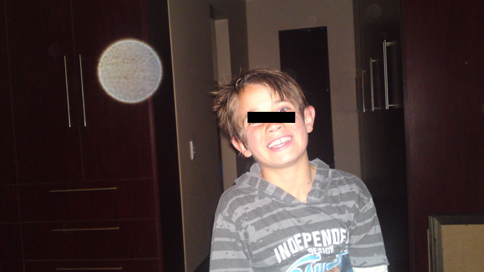 While reviewing several pictures I took of my (almost) 5 month old daughter this evening, I noticed this little round light spot. I sat in the same place as I photographed her (with flash, on high speed shutter mode, since she often tends to blink) as she played on a blanket for a good ten minutes, or so, and it appeared in just the one photo shown below, and shown again, enlarged for detail. Any idea on what would have caused it would be greatly appreciated. By the way, I found your page because I was looking for someone to explain these 'phenomenon' in a rational manor and not just jump to any conclusions. I have captured "light orbs" on video before and allowed someone to get me worked up, only to later come to the obvious conclusion that it was merely dust particles.... thanks in advance!