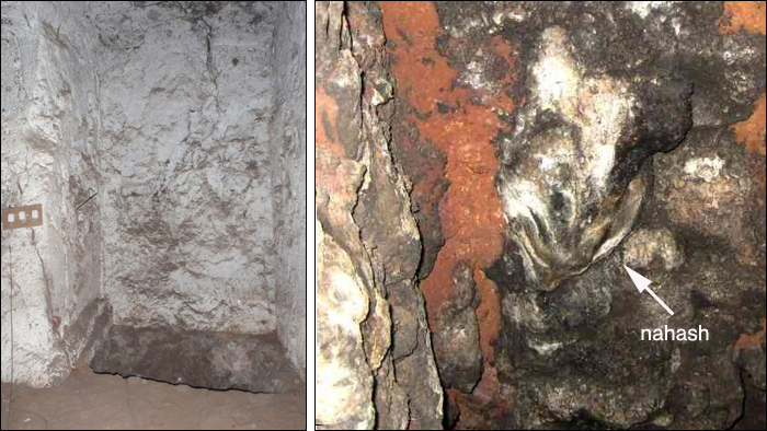 One photo [above, right] displays rock simulacrum in the form of a snake's head, making sense of local folk stories which claim that the caves are haunted by a giant snake called el-Nahash.