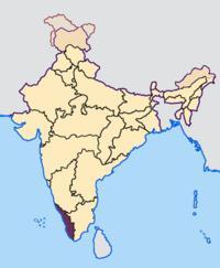 The shaded area represents the state of Kerala in India. (Courtesy Nichalp)