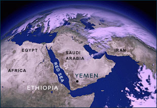 The country Sheba or Saba, whose name means Host of Heaven and peace, was Abyssinia. Located in southwest Arabia on the eastern tip of the Red Sea, Sheba was thriving about 3000 years ago and occupied 483,000 square miles of mountains, valleys (wadis) and deserts in the area of present day Yemen. Some historians claim that Ethiopia, on the western end of the Red Sea, was also part of Sheba's territory.