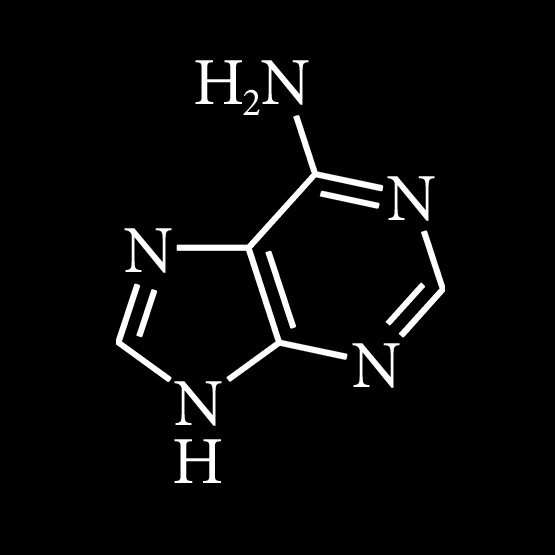 Written for Viewzone by Scott Onstott DNA Adenine is one of four bases that code for all life in deoxyribonucleic acid. Adenine's molecular structure is based on a hexagonal ring bonded to a pentagonal ring: