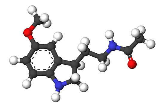 ![]() Melatonin Melatonin is secreted by the pinecone shaped pineal gland in the center of the human brain. The core of this molecule is a pentagonal ring bonded to a hexagonal ring. Melatonin is associated with sunlight and enlightenment.