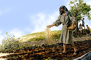 "Now having been questioned by the Pharisees as to when the kingdom of God was coming, He answered them and said, "The kingdom of God is not coming with signs to be observed; nor will they say, 'Look, here it is!' or, 'There it is!' For behold, the kingdom of God is in your midst." His famous sermon about the kingdom makes the analogy of a farmer sowing seeds. The various environments which the seed finds itself correspond to the mental conflicts which must be overcome to become part of the natural order of the Father. That, in itself, is to be in the Father's kingdom.