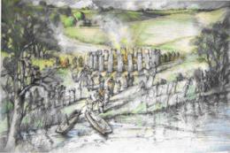 The drawing [right] shows the sensational discovery of "Blue Stonehenge" by a team led by archaeologists from Manchester, Sheffield and Bristol Universities on the West bank of the River Avon last month.