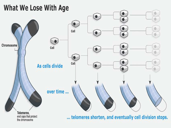 A couple of weeks ago the results of an experiment were published that offers a glimpse into the future of the human race -- a future when there is no more "getting old" and, most significantly, no cancer. But to fully appreciate what has happened, you will need to get the background story first. It is a natural desire to want to live a long life. Despite the claims of eating organic food, vegetarianism or vitamins, the only thing scientifically linked to longevity (besides starvation) is genetics. If your parents and grandparents lived a long life, you will likely live long. We now understand exactly what causes aging and death -- on the molecular level. Scientists have spent the last decade trying to manipulate the enzymes and protiens that determine how many times our cells can make copies of themselves -- and how long we can live. But they have always faced a dilema: the same conditions that makes a cell live longer are also present in cancer. About a decade ago, it was discovered that the ends of the DNA molecular strands had a long series of meaningless code ("TTAGGG" in the language of DNA enzymes) that kept repeating and repeating. It was noticed that these strands, called telomeres, were longer in young cells (about 10,000 base pairs) and shorter in older cells (about 5,000 base pairs). When the telomeres got too short, the cell died.