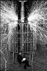 comprehension of what Tesla said, but were mesmerized by the bolts of lightning that leapt from his ominously humming coils, and the unwired light bulbs that lit at the