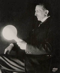 touch of Tesla's hand. These spectacular displays led Tesla to be popularly regarded as some sort of magician -- a title that was bestowed not in ridicule, but in awe.