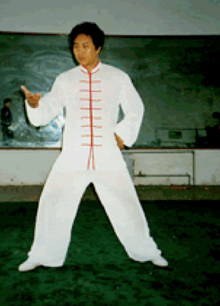 Chen Youqin demonstrating the application of Chen Family Chan ssu jin while doing the doing the double covering palm movement from Eddie Oshins self-referential motion. Chen Youqin middle son of Mr. Chen Qingzhou is applying Chen Family "chan ssu jing" (silk reeling exercise) to show an application of the spinorial "orientation-entanglement relation" described by Oshins as self-referential motion in his postnarrative research on the physics of tao (Oshins, n.d.)